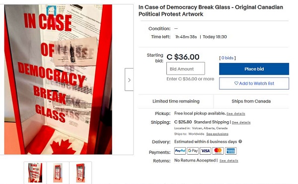 Artist Kim Fortin is auctioning an artwork called -In Case of Democracy Break Glass. The piece poses a question. What is the value of the artists’ vote during the Canadian Federal Election 2021?